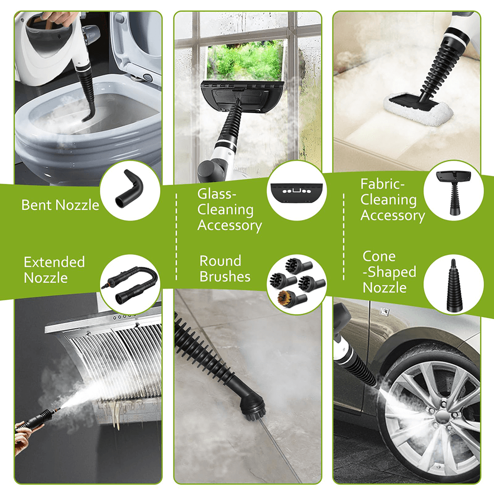 Unleash the power of pure steam. Heating up to 110°C (230°F) in seconds, this steamer penetrates deep into pores and crevices. It doesn't just clean; it sanitizes, effectively eliminating 99.99% of germs, bacteria, and viruses without any chemical residue.